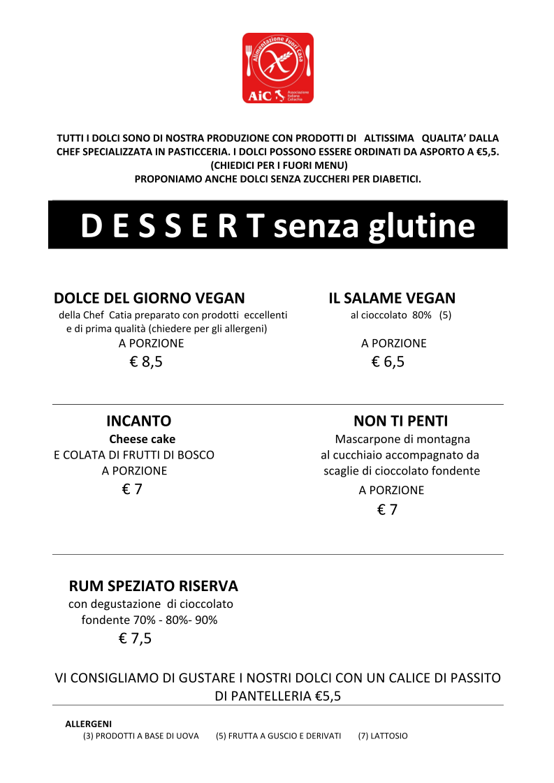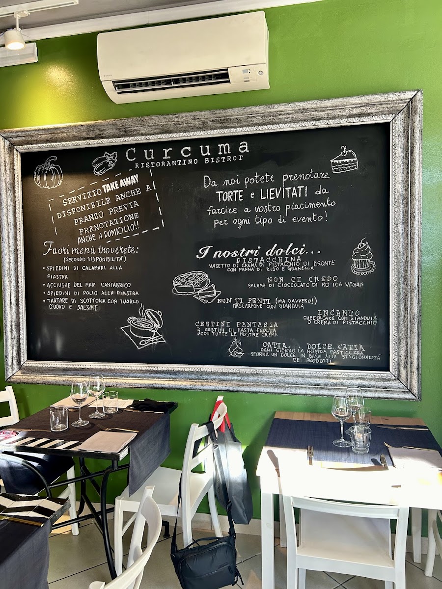 The menu at Ristorante Curcuma offers a delightful selection of dishes, blending traditional Italian flavors with modern twists. For antipasti, you can savor Gamberoni al Sale Rosa with celery and teriyaki sauce on the side, or try the crispy Frittelle di Filetto di Baccalà. Vegetarians will appreciate the Roll di Verdure di Catia and the hearty Tortino di Polenta al Forno con Ragù di Carne. The first courses feature the vibrant Paella di Pesce, available in two options: a gr. 800 piatto unico or a gr. 400 primo piatto a persona. There’s also the comforting Tortellini in Brodo di Cappone, as well as fresh, traditional pasta dishes made to order. For secondi, the menu includes Pesce Fresco (available only by reservation), crispy Fritto di Pesce e Carciofi, and rich Faraona Nostrana con Patate Bollito, a complete dish. Meat lovers can enjoy the succulent Tagliata di Manzo Black Angus. As for sides, the Patate al Forno, Verdure al Timo al Forno, and Carciofi Gratinati complement the main courses beautifully. To finish, indulge in sweet treats like the Cheese Cake ai Frutti di Bosco, the unique Salame Vegan, or the chef’s Dolce del Giorno. For a flavorful end, the Rum Speziato e Selezione Cioccolato offers a rich, indulgent experience. Overall, the menu offers a wide variety of options to suit different tastes, combining quality ingredients and creativity in every dish.